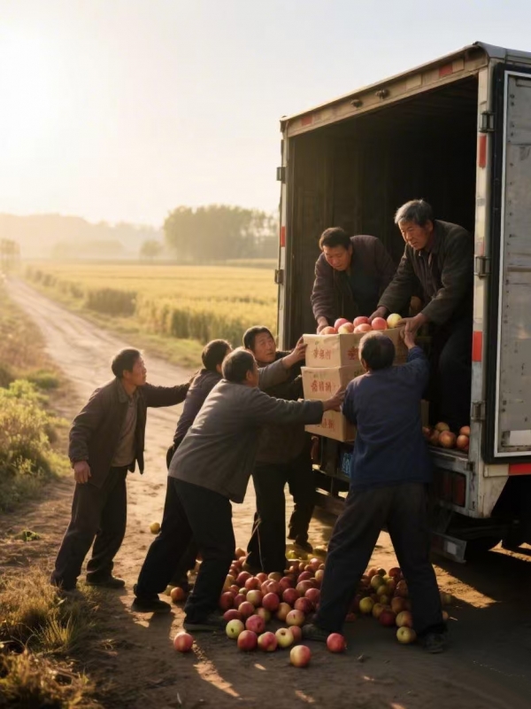 我像往常一样去靠山村拉苹果。
